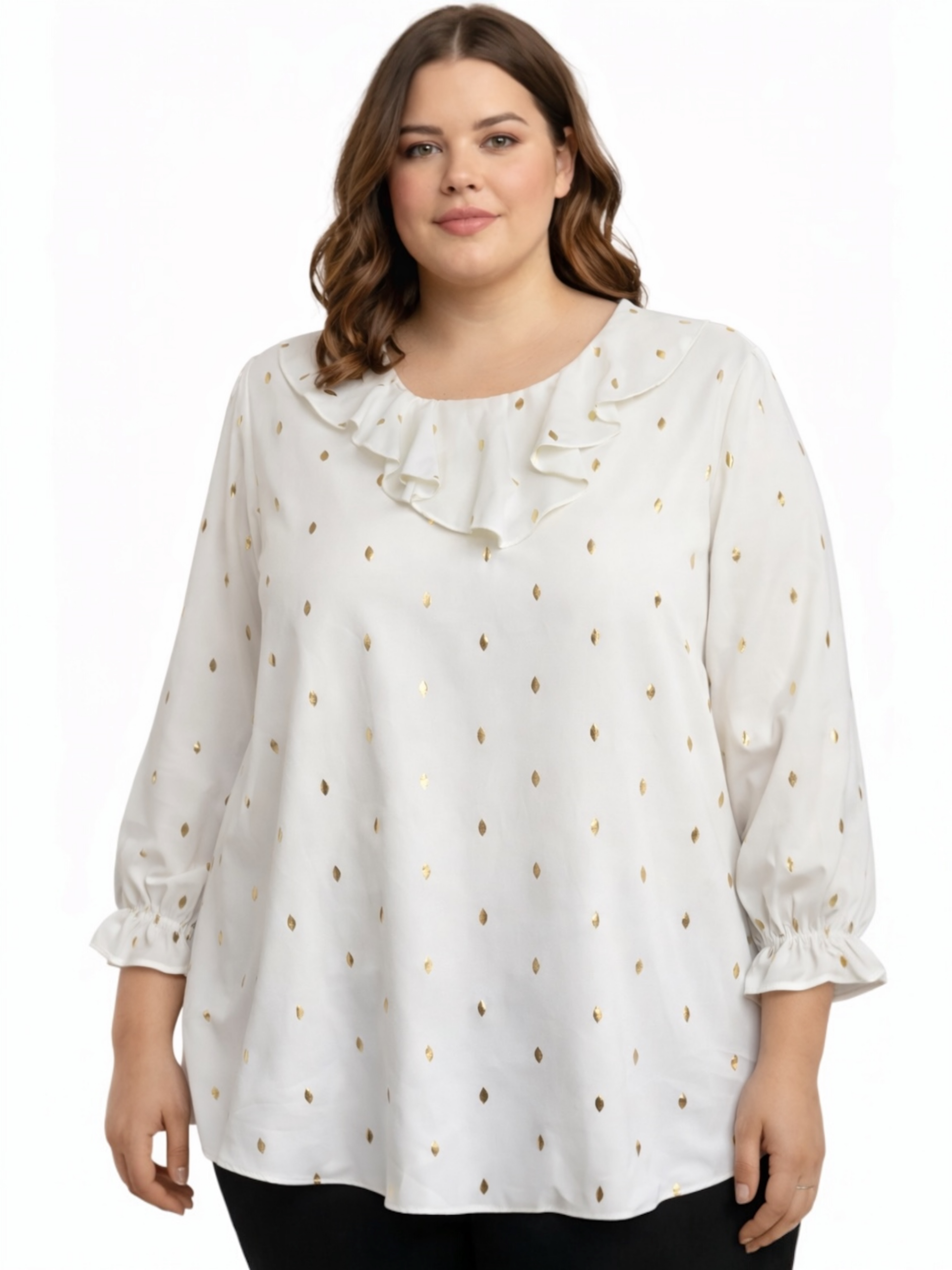 52 obwód w biuście 110-120 cm, obwód w biodrach 120-130 cm, długość 74 cm, długość rękawa 65 cm, biceps do 44 cm