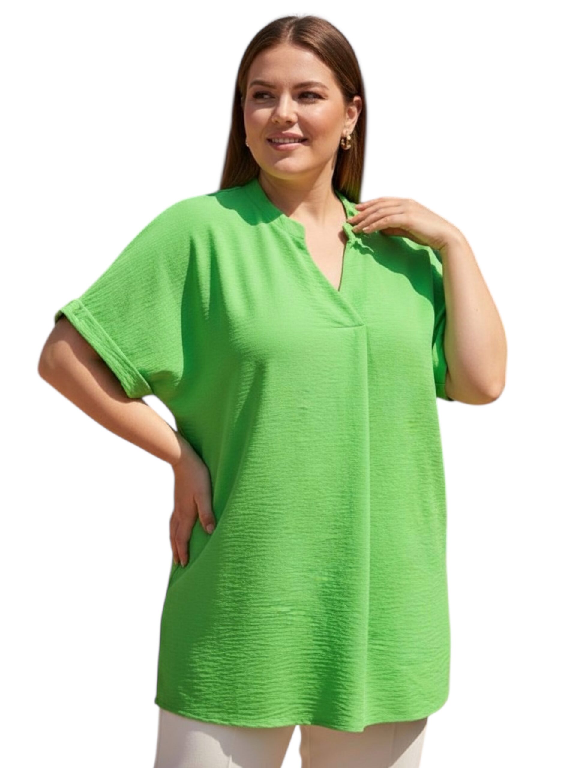 | 46 | obwód w biuście 90-100 cm, obwód w biodrach 100-110 cm, długość 77 cm, długość rękawa 33 cm, biceps do 44 cm |
