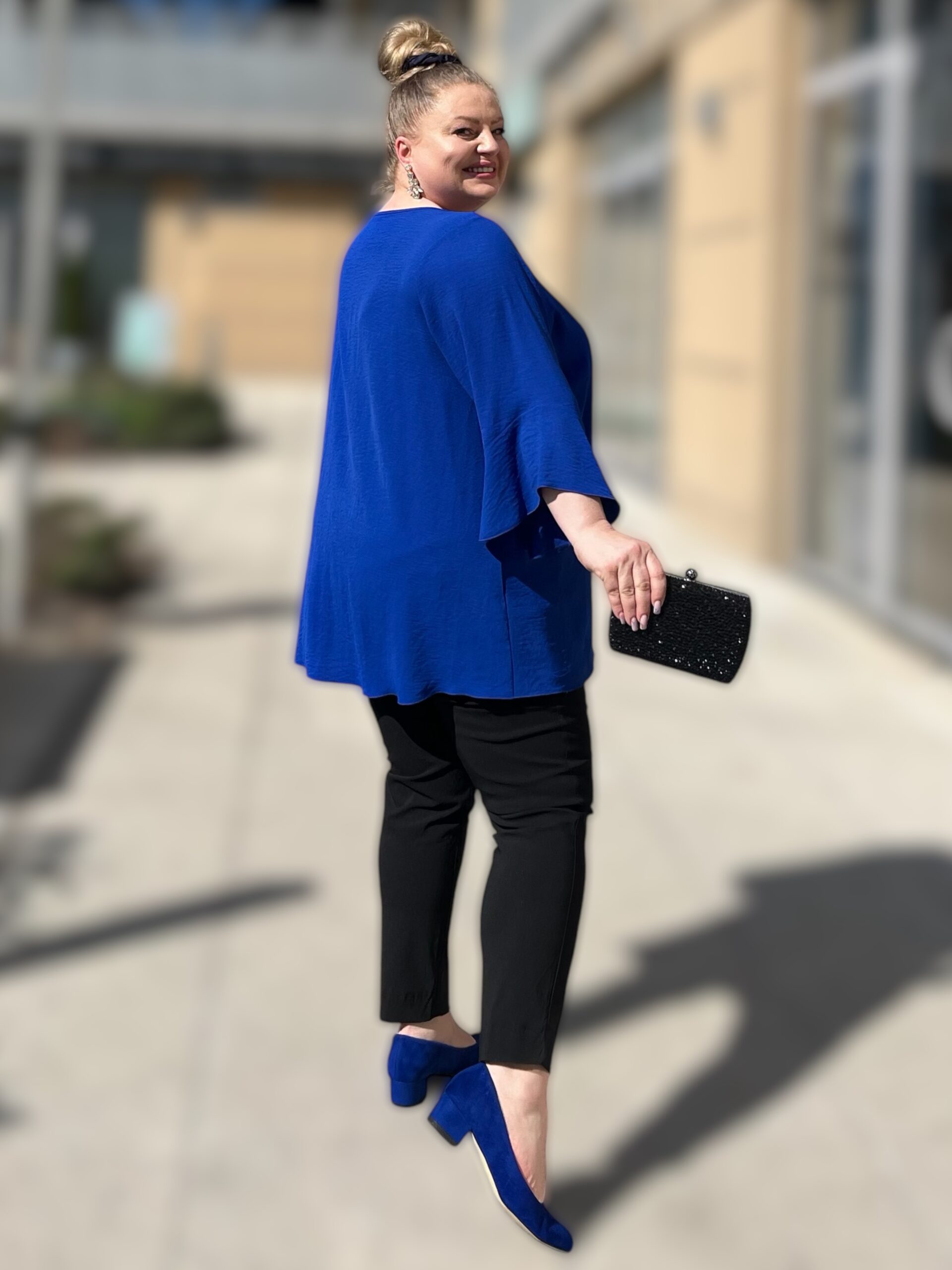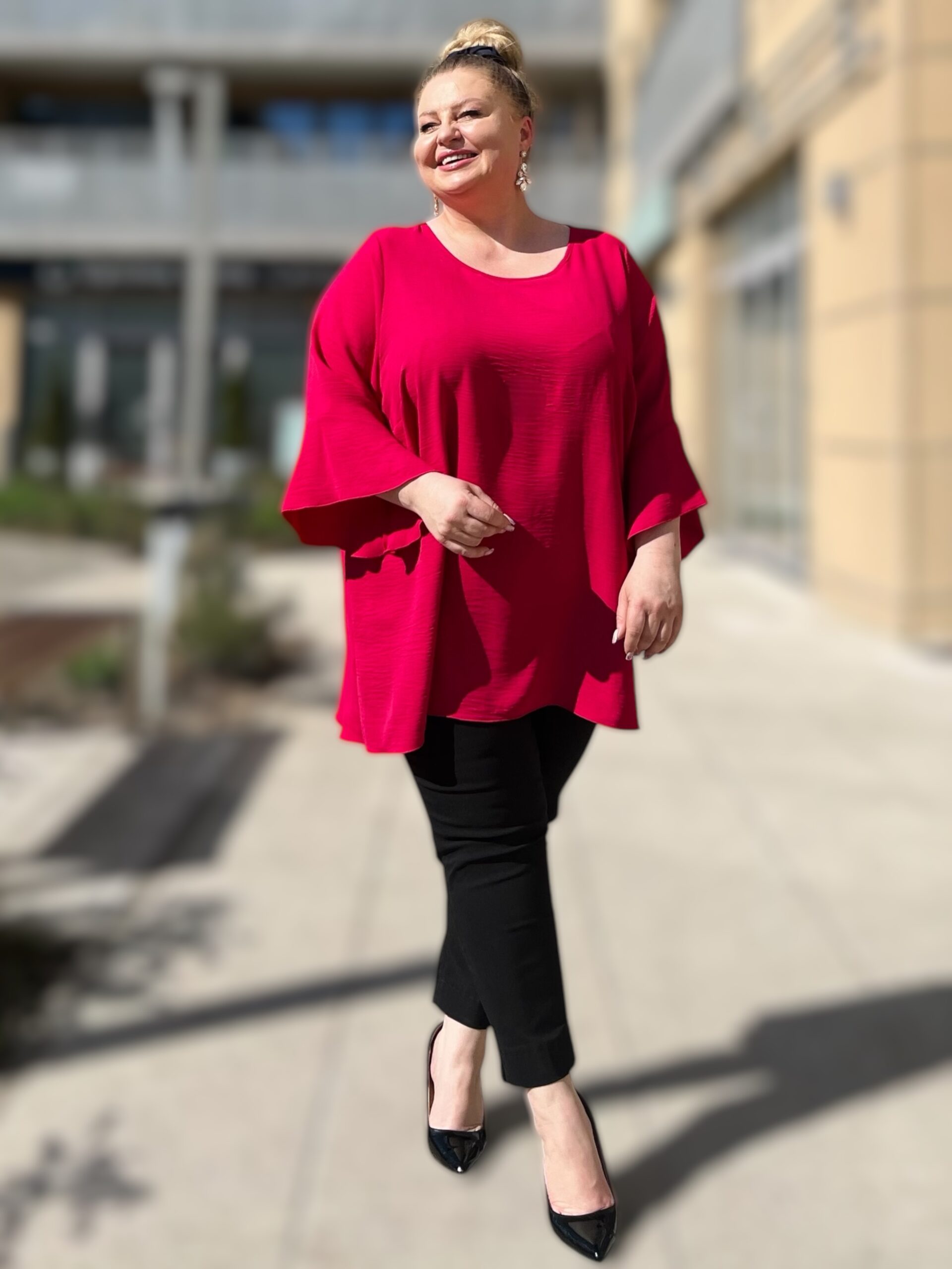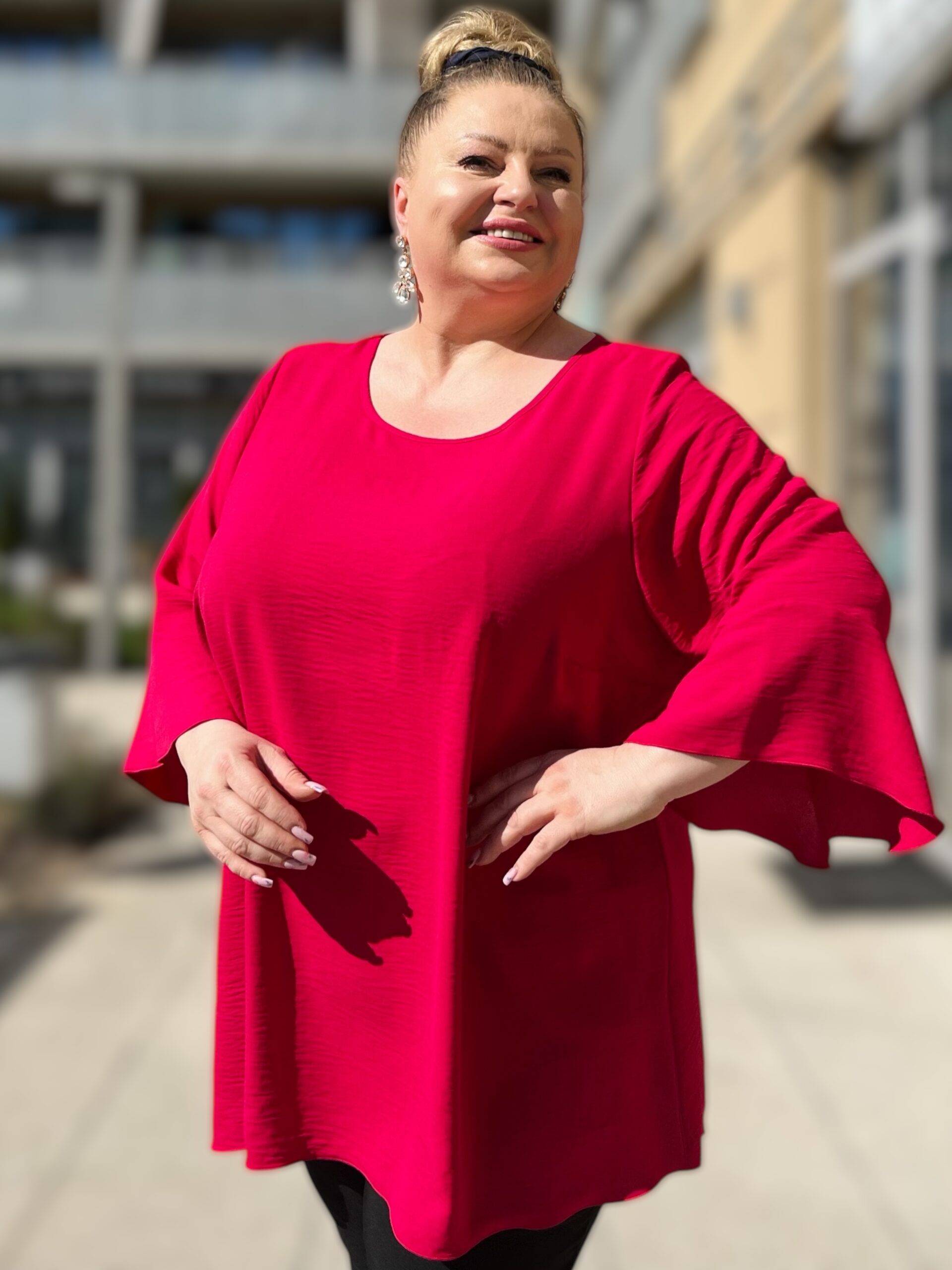 56 obwód w biuście 130-140 cm, obwód w biodrach 140-150 cm, długość 75 cm, długość rękawa 47 cm, biceps do 46 cm