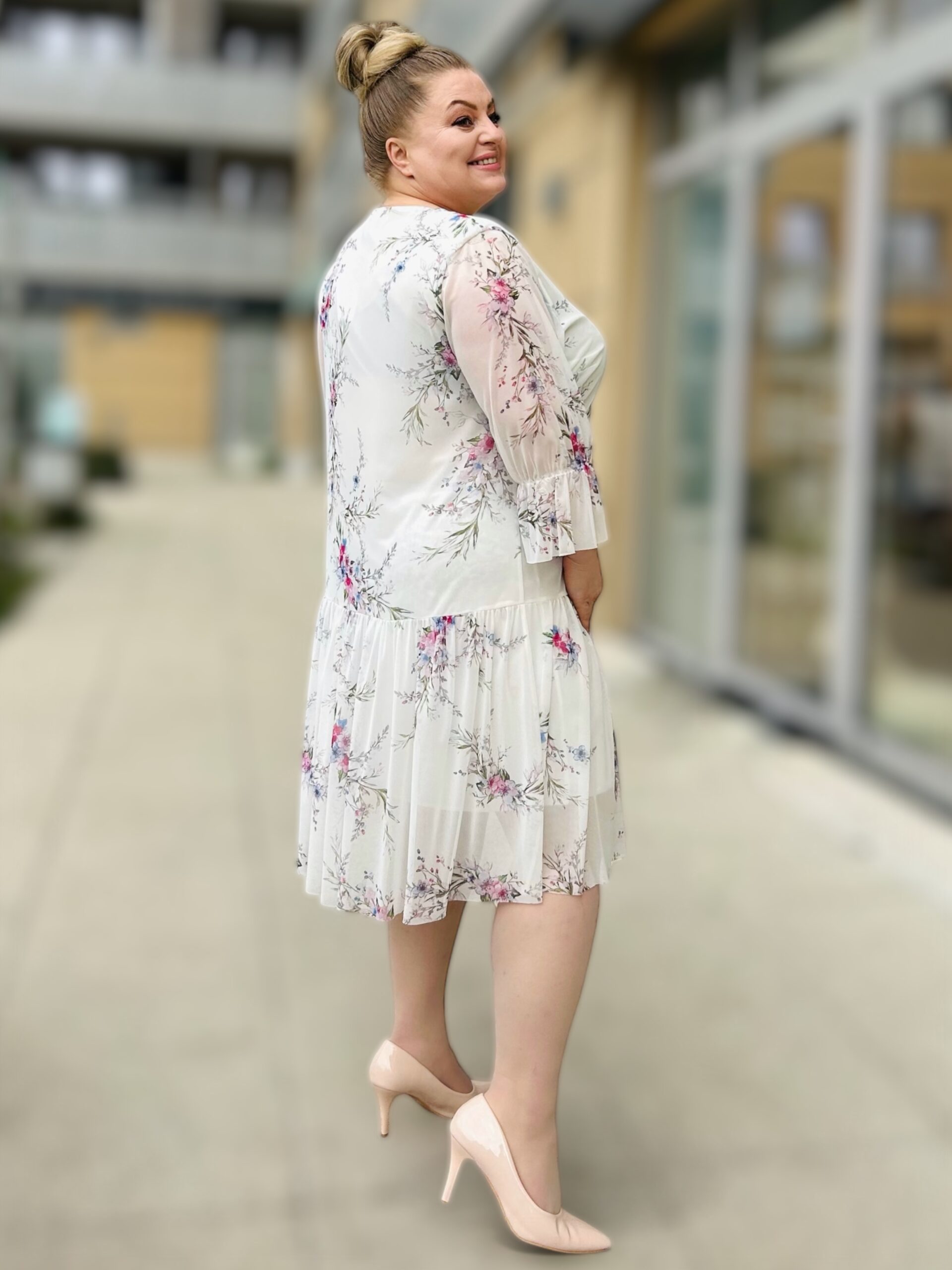 Uwielbiaj swój styl z naszą sukienką XXL w kwiaty! Sukienka to piękny element garderoby, który może dodać odrobinę szaleństwa każdej stylizacji. Jest to idealny wybór dla osób, które chcą wyglądać modnie i oryginalnie. Jest to idealny wybór na wszelkiego rodzaju wyjścia, od wesel po imprezy. Sukienka w kwiaty jest łatwa w pielęgnacji i może być noszona wielokrotnie.To sukienka plus size, która podkreśli Twoje atuty i ukryje wady sylwetki.