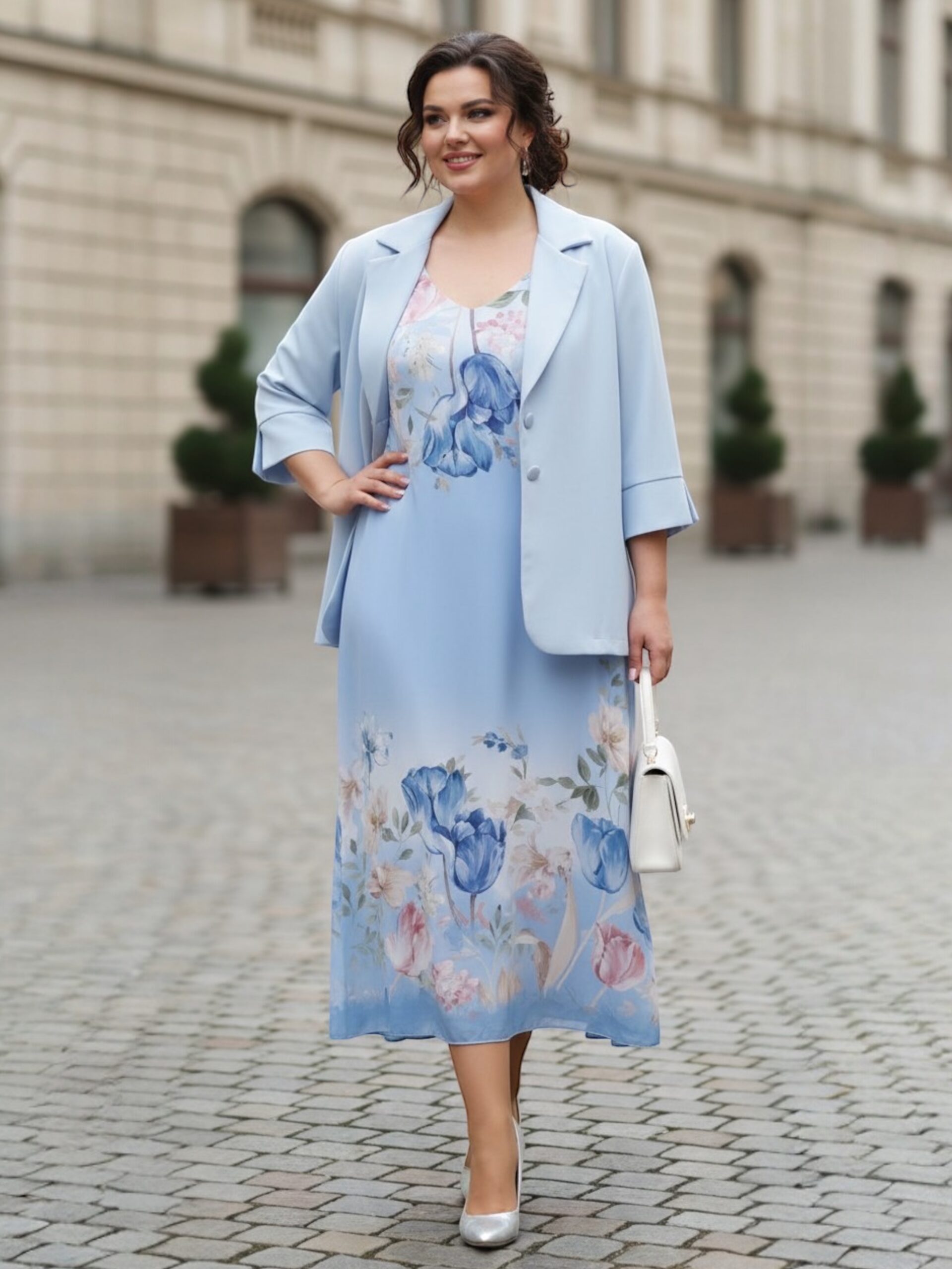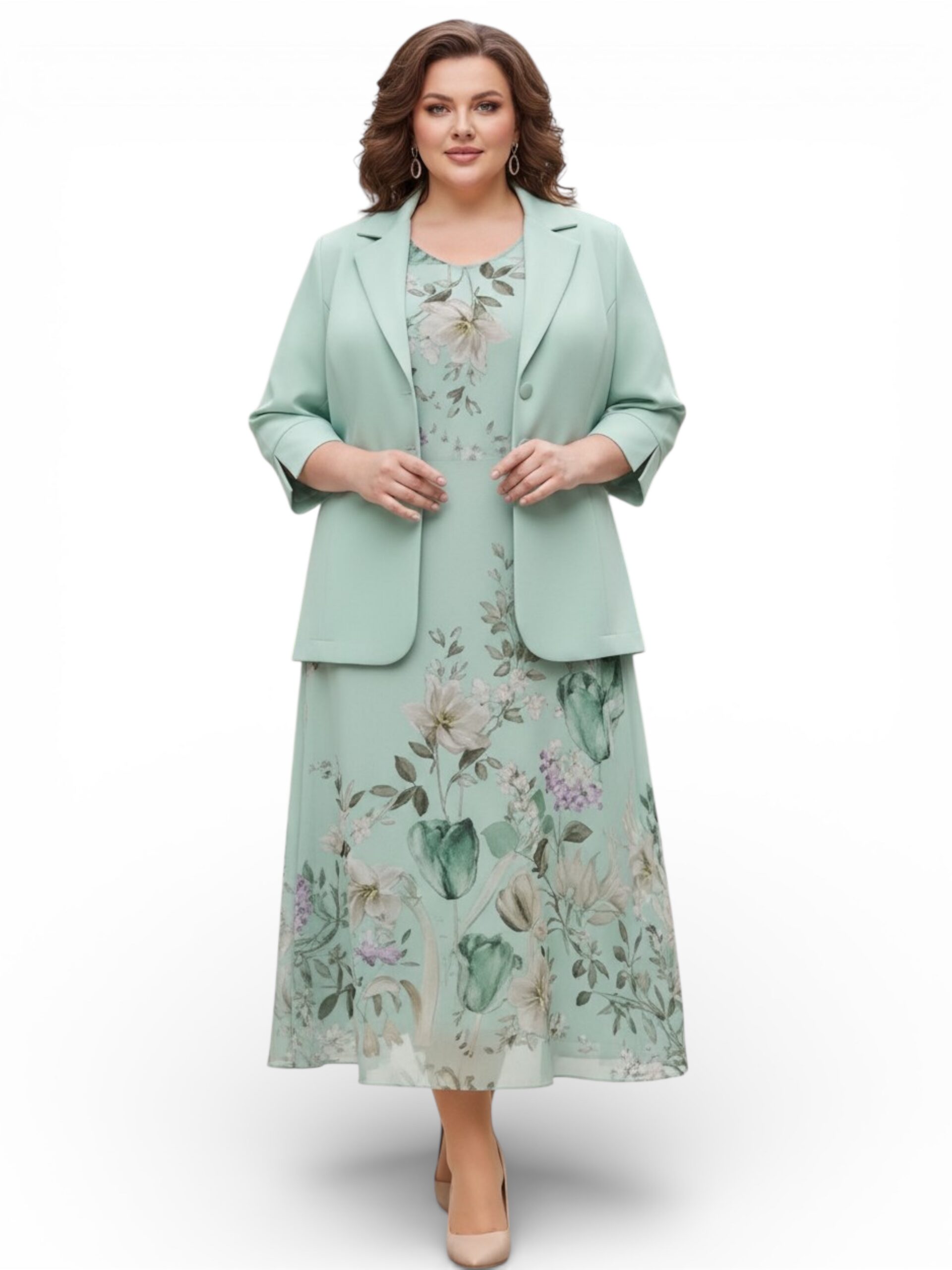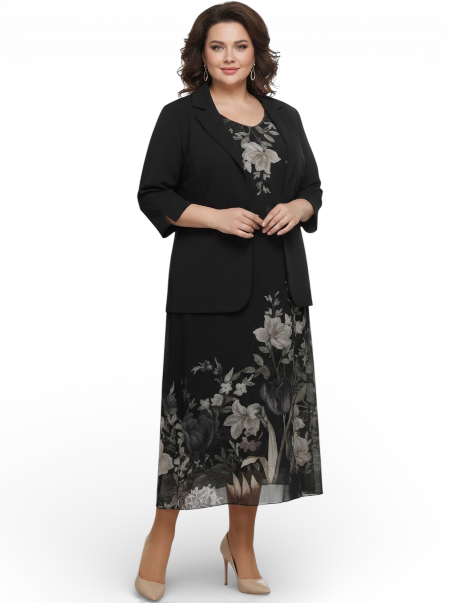 • Komplet damski w dużych rozmiarach – sukienka + żakiet.