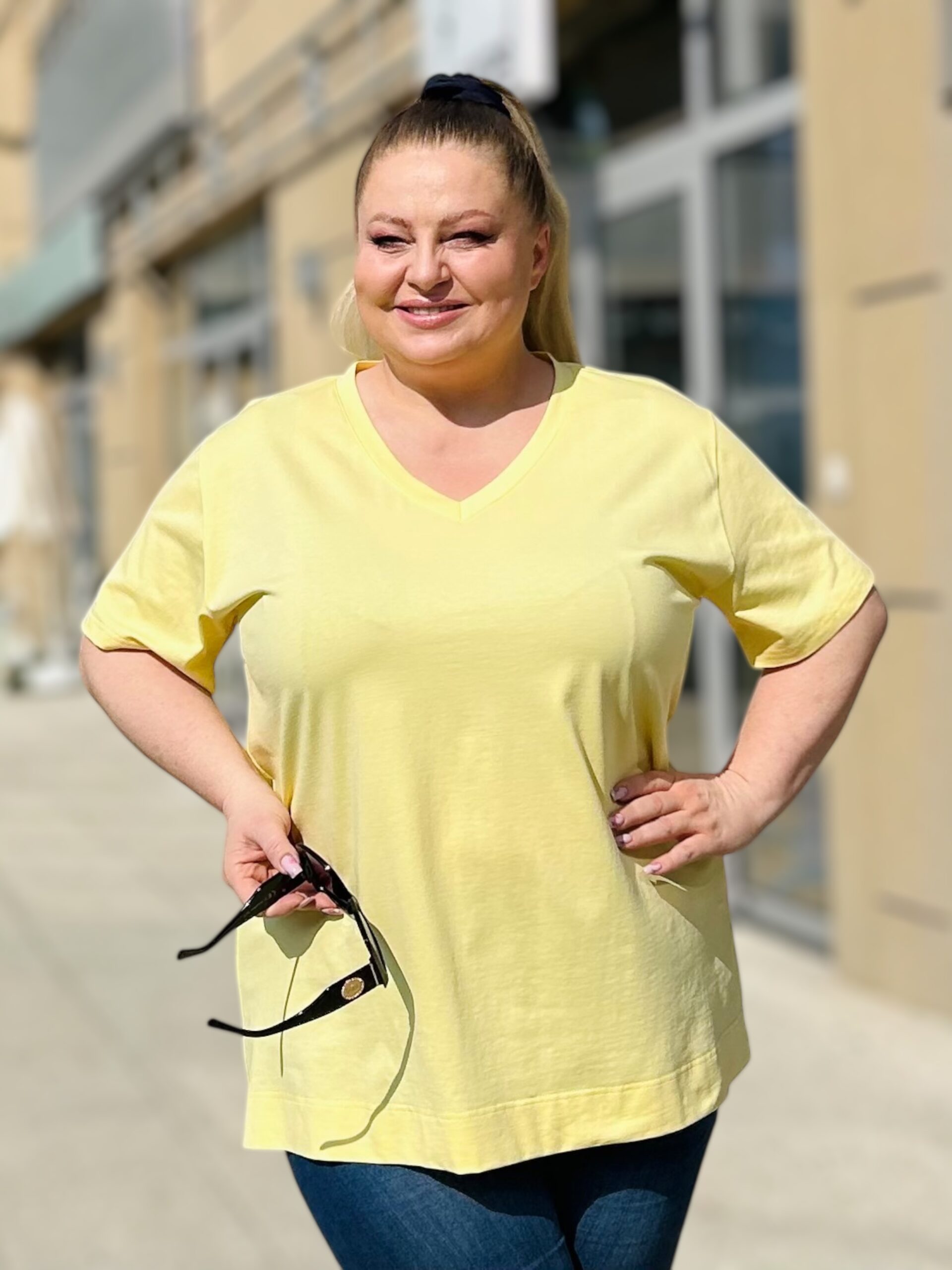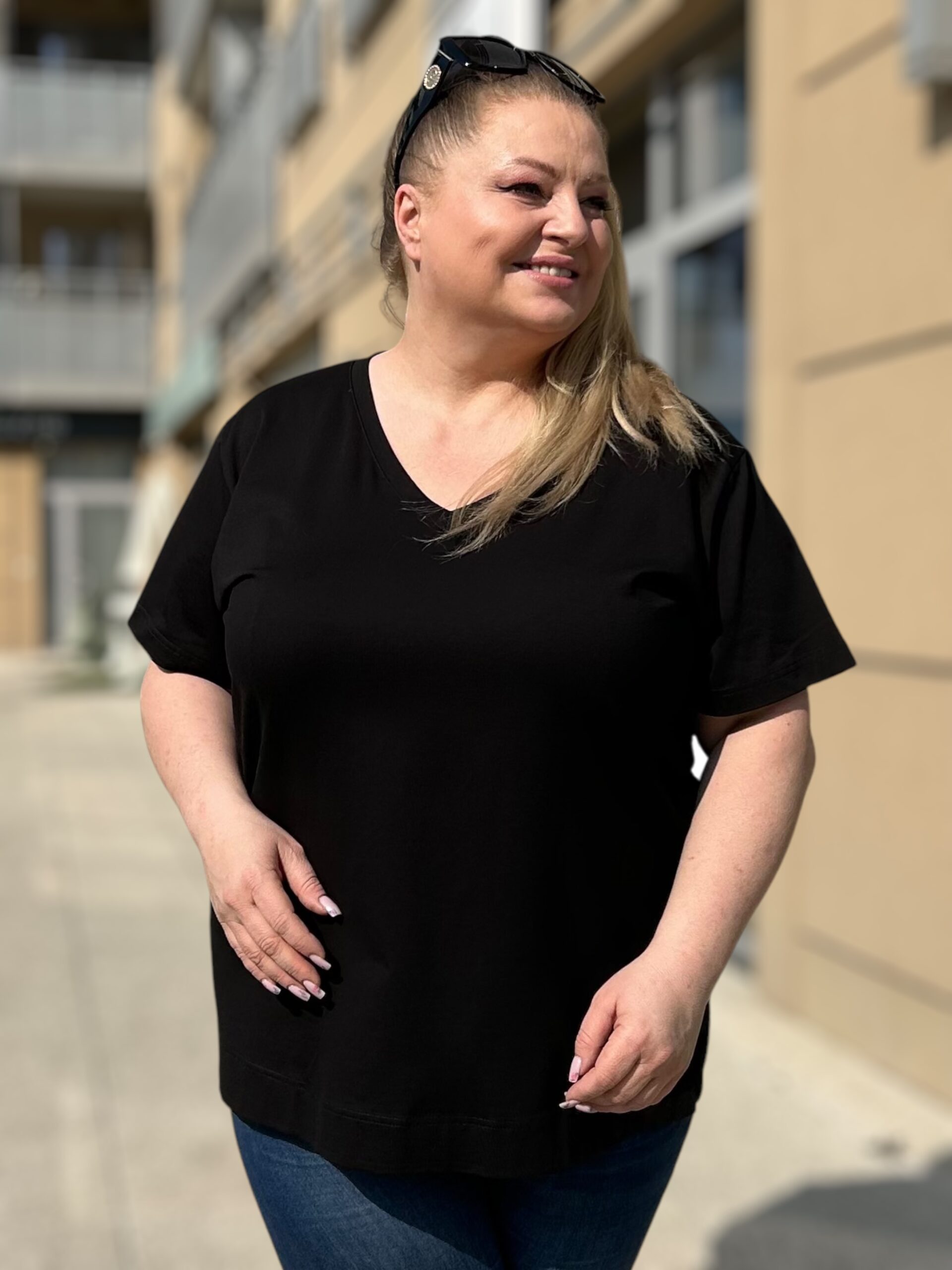 48 obwód w biuście 110-120 cm, obwód w biodrach 120-130 cm, długość 68 cm, długość rękawa 20 cm, biceps do 44 cm