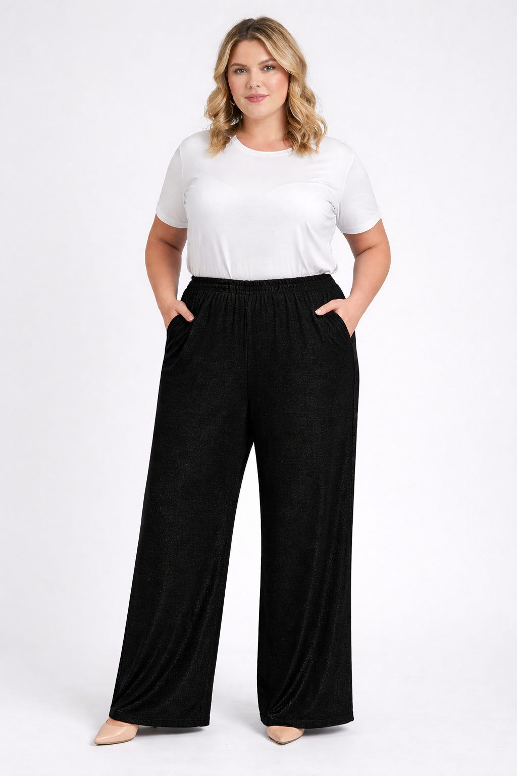 - Spodnie dzianinowe XXL z szerokimi nogawkami.
