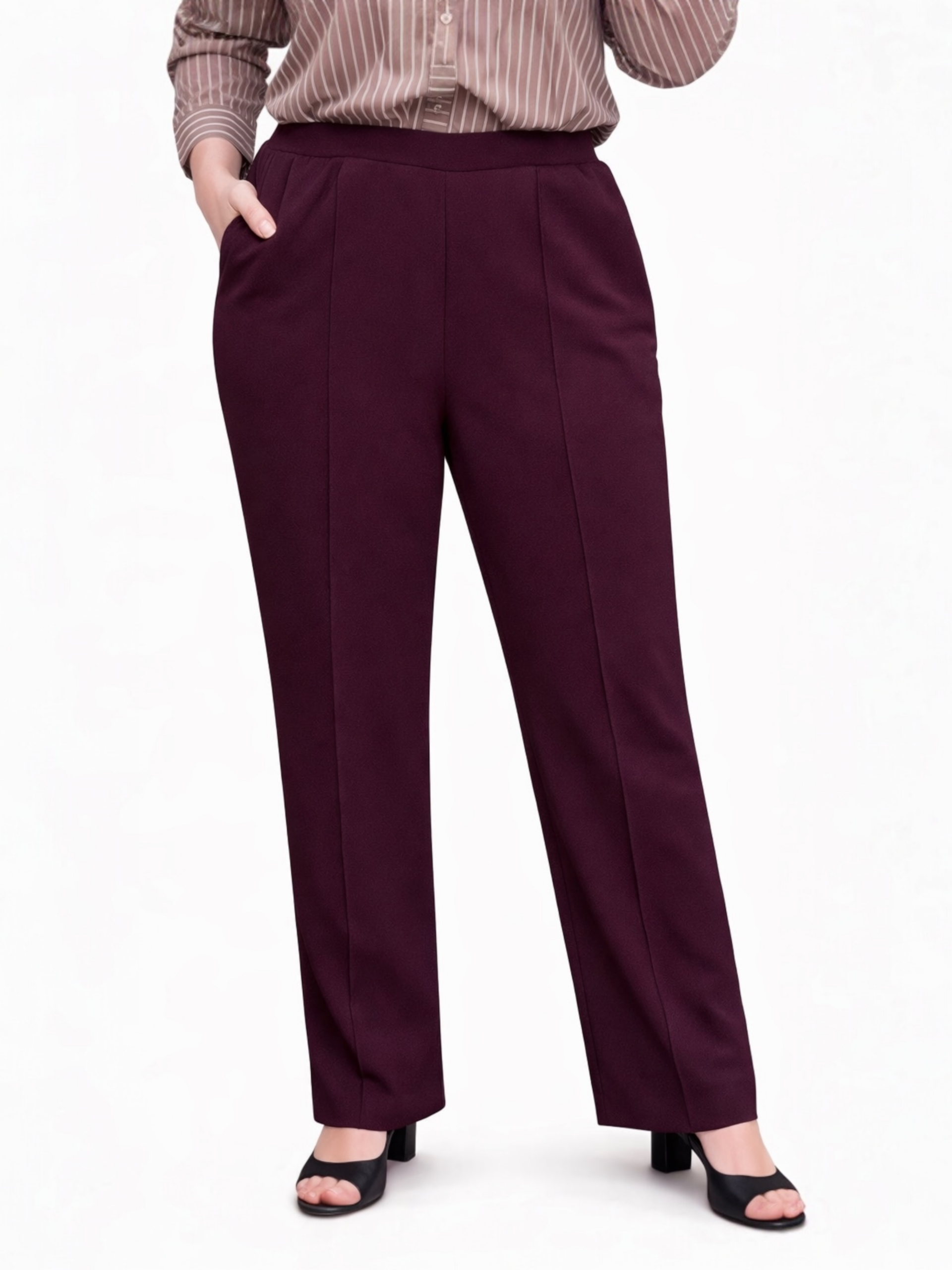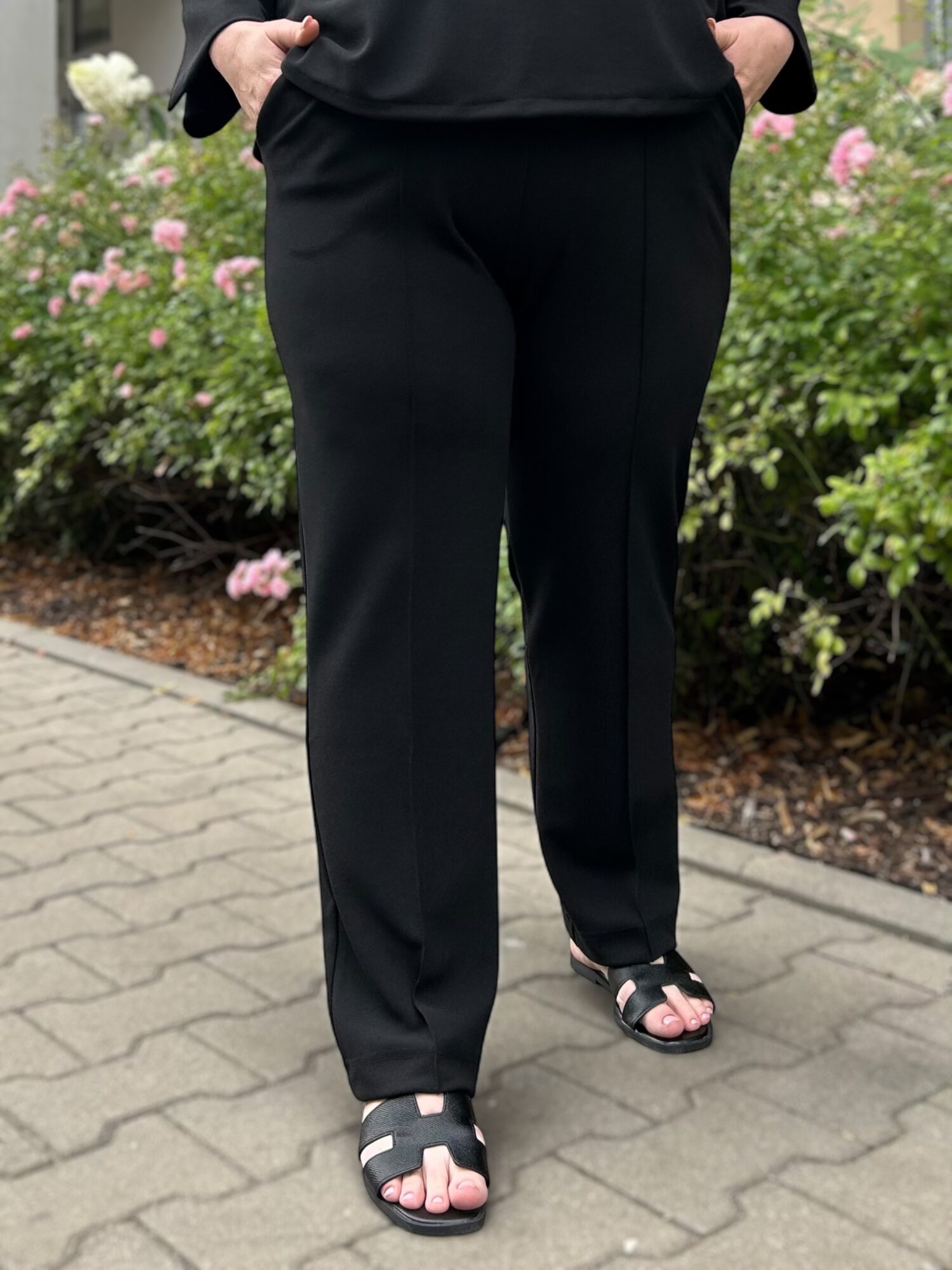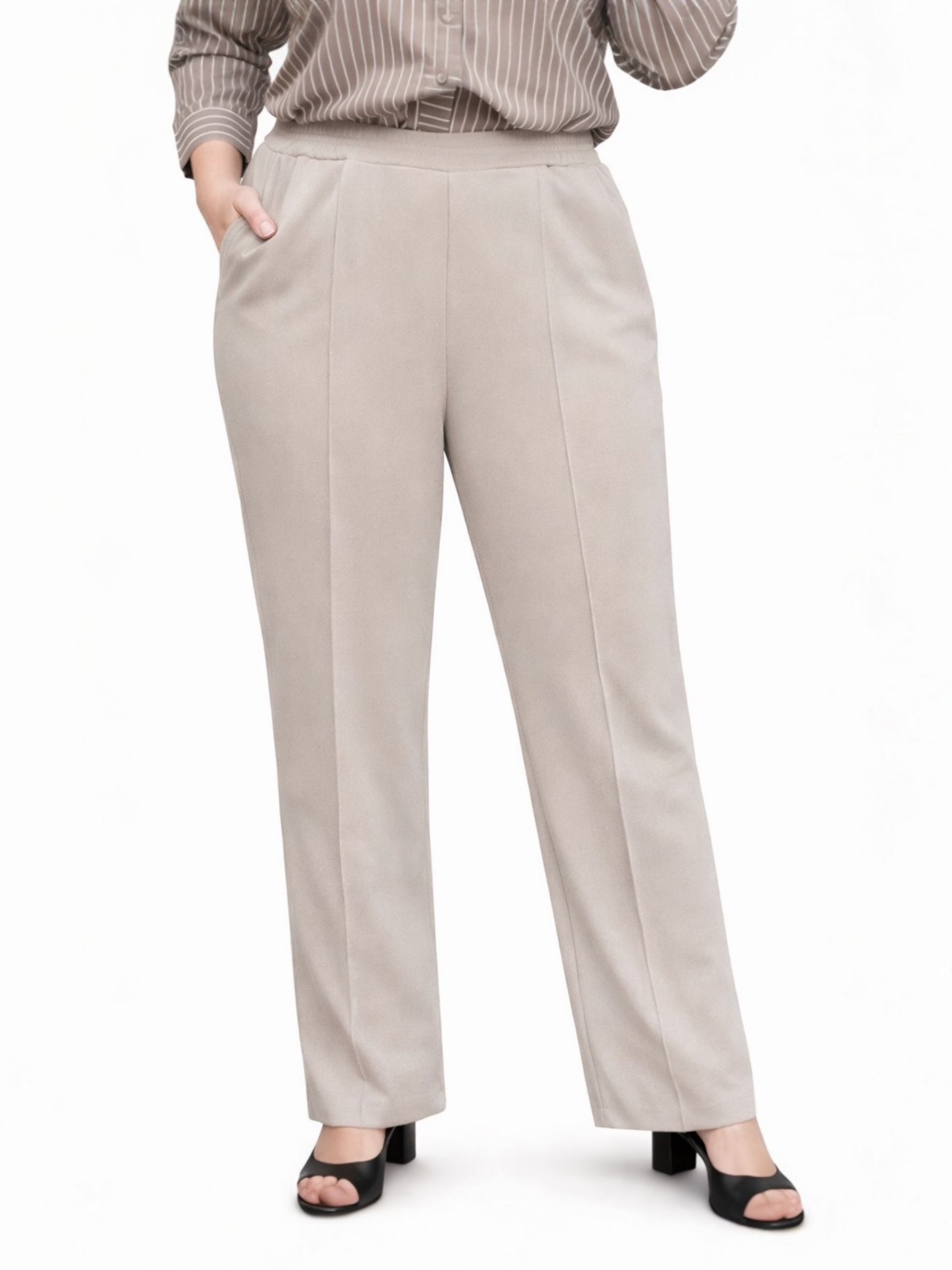 - Spodnie w dużych rozmiarach na kant, z przeszyciem.