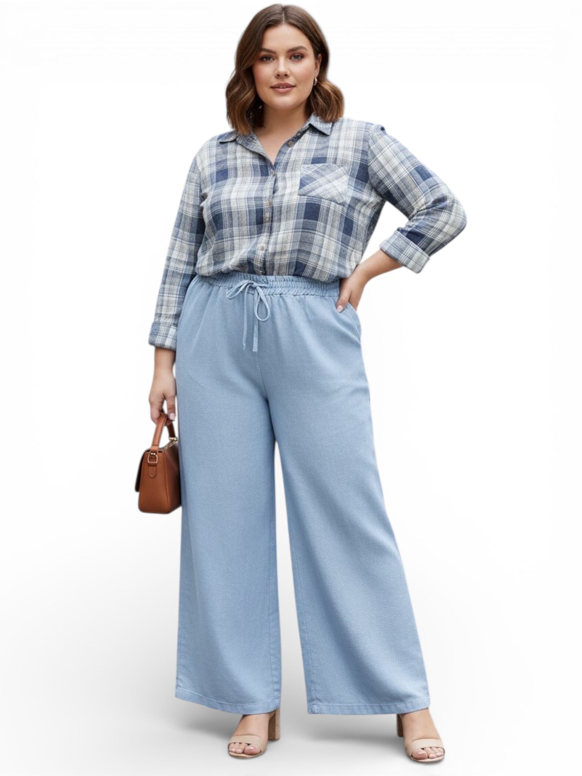 58 obwód w pasie 120-140 cm, obwód w biodrach 140-160 cm, długość nogawki wew. 74 cm, długość nogawki zew. 104 cm, długość stanu tył/przód 44/33 cm, szerokość uda do 80 cm, szerokość nogawki na dole 37×2 cm