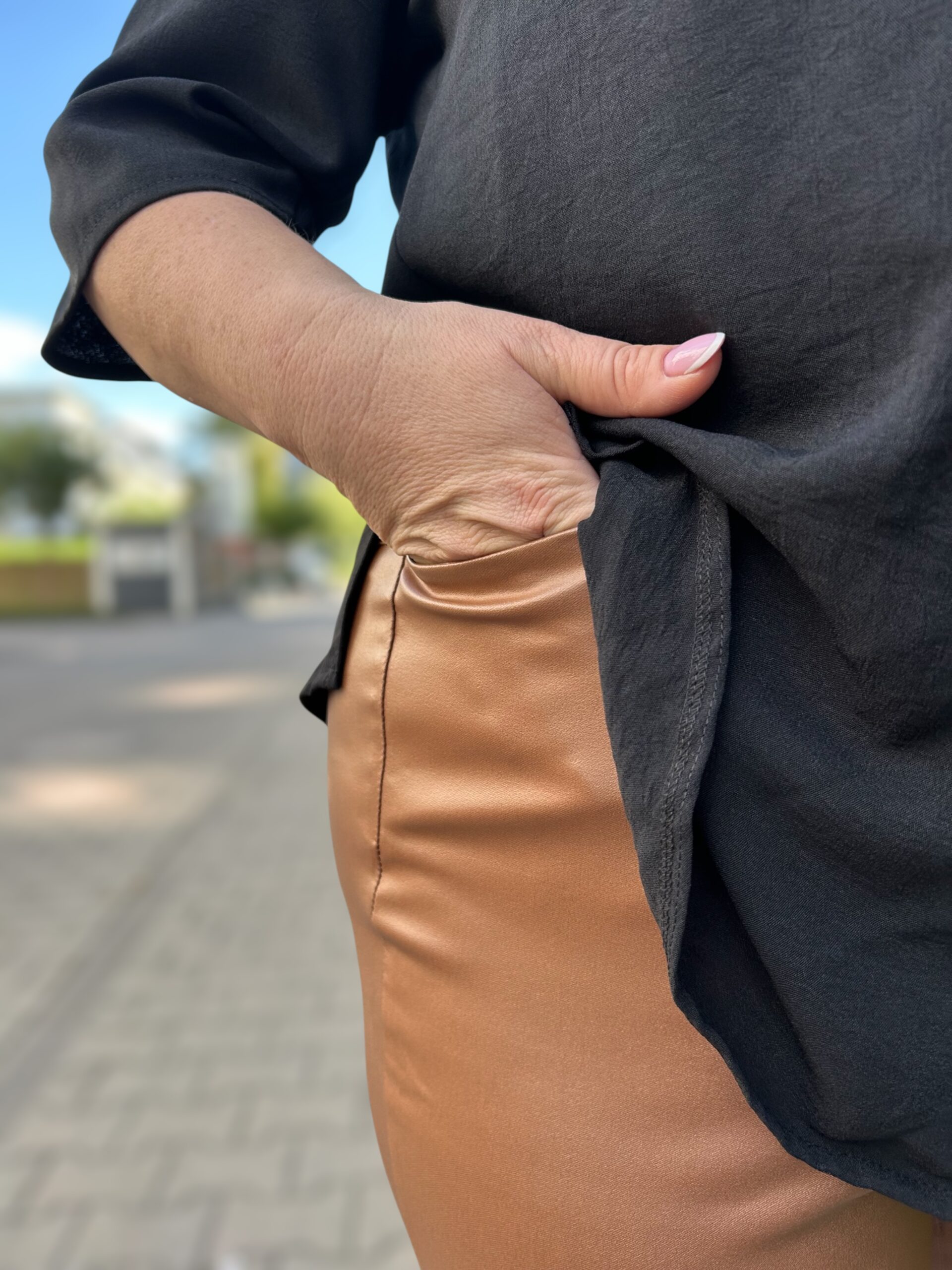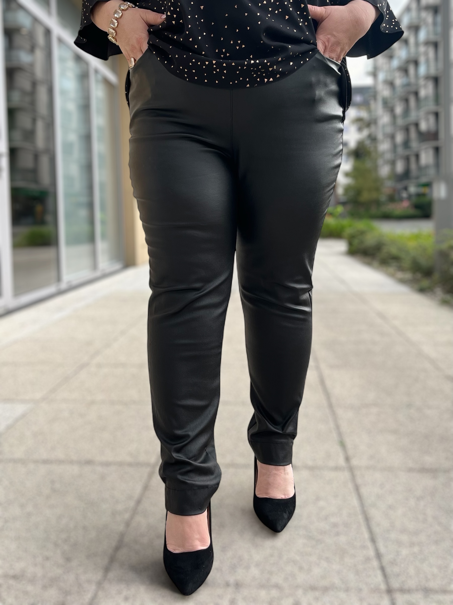Spodnie Sylwia to propozycja dla kobiet, które cenią elegancję i komfort. Wykonane z miękkiego materiału o efekcie skóry, idealnie dopasowują się do sylwetki, podkreślając atuty figury. Elastyczny pas – dzięki gumce w pasie spodnie doskonale układają się na ciele, zapewniając wygodę noszenia. Plus size – dostępne w większych rozmiarach, zaprojektowane z myślą o kobietach o pełniejszych kształtach. Modny wygląd – efekt skóry nadaje spodniom eleganckiego charakteru, idealnego na różne okazje. Uniwersalny fason – świetnie komponują się zarówno z eleganckimi bluzkami, jak i casualowymi stylizacjami. Stylowy kolor – oliwkowa zieleń to odcień, który wyróżni Cię z tłumu i doda charakteru Twojej stylizacji.