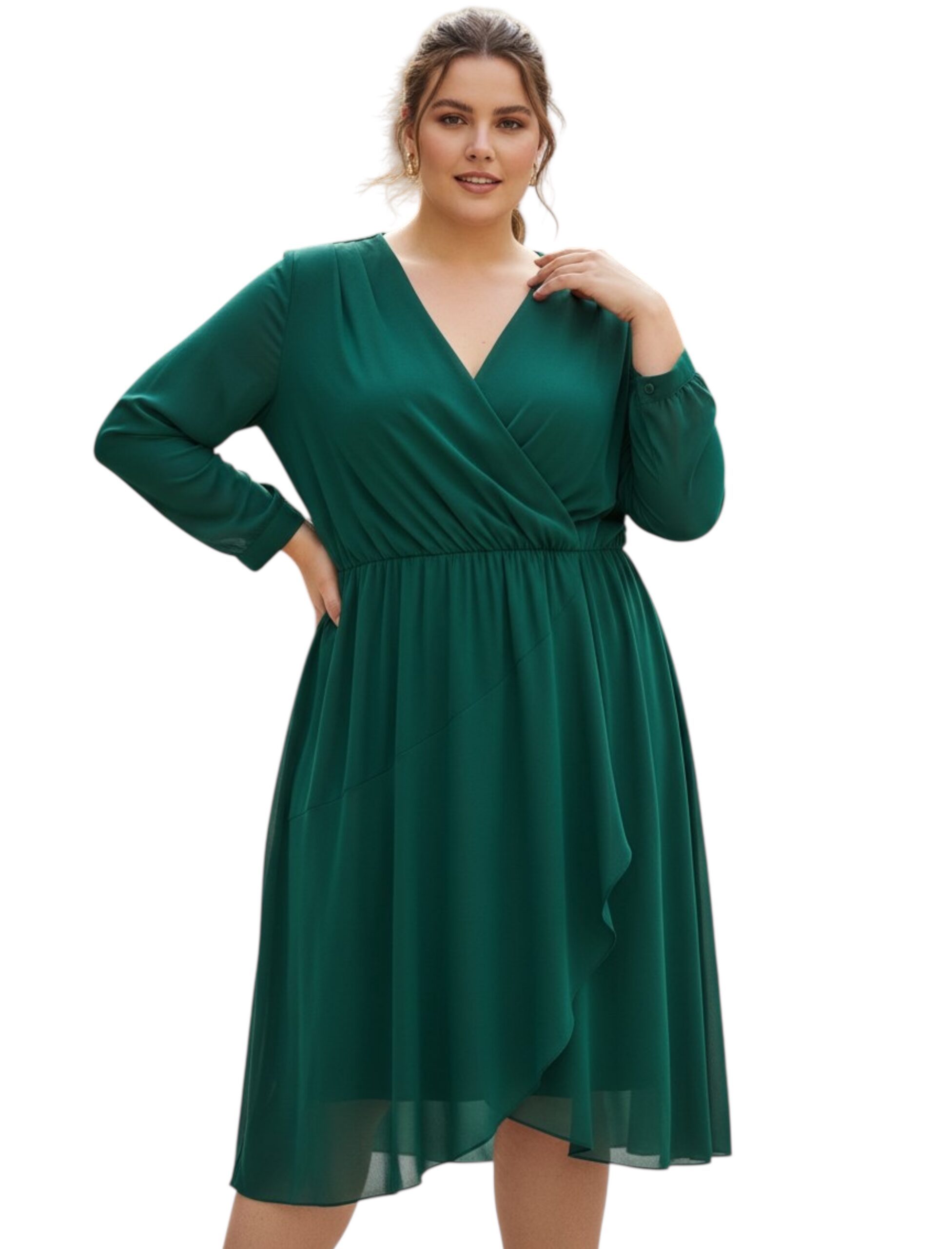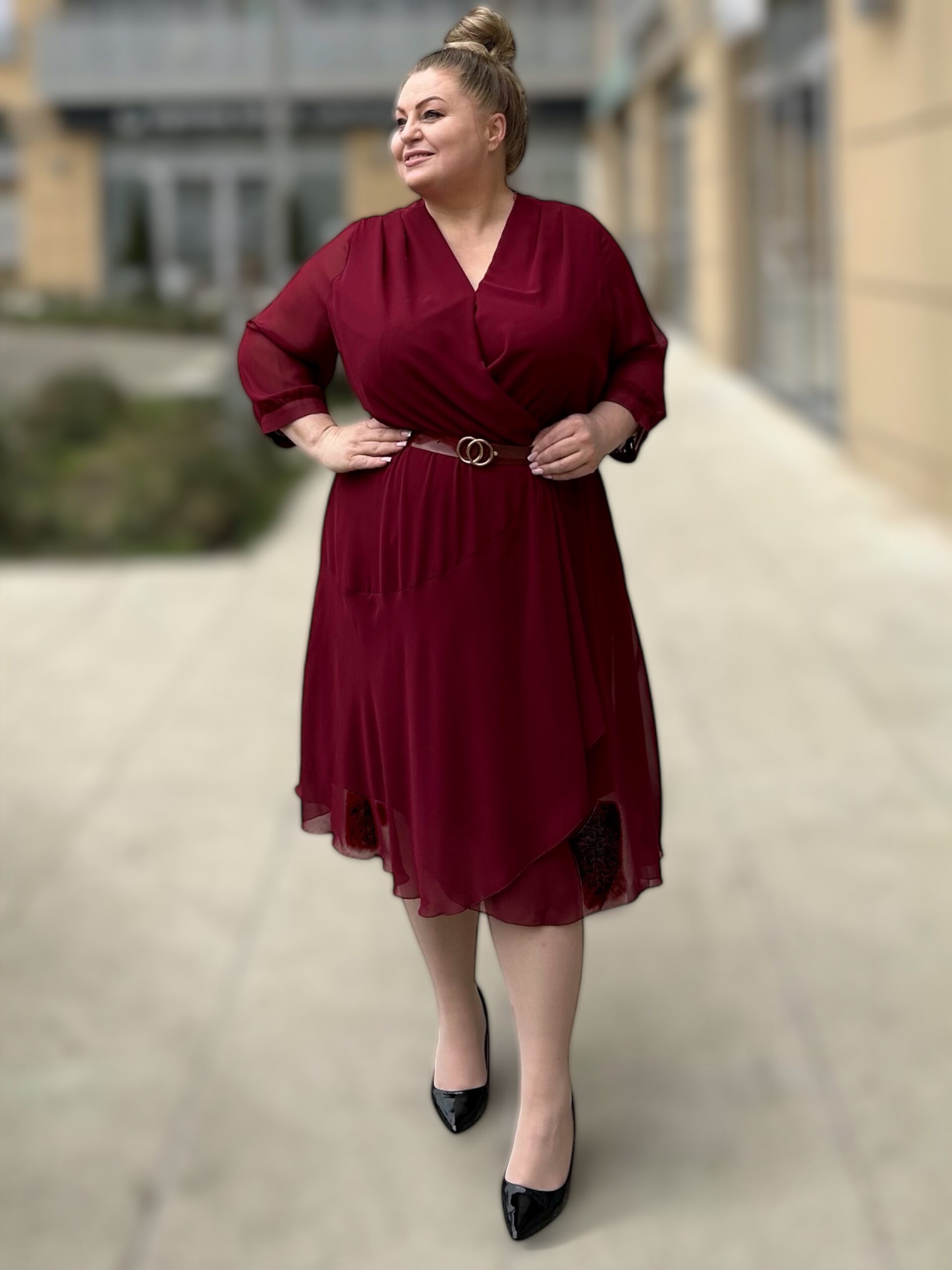 Wyjątkowa sukienka, która łączy w sobie styl, elegancję i wygodę. Ta modna sukienka, dostępna w naszym sklepie XXL, została zaprojektowana specjalnie dla kobiet ceniących modę w dużych rozmiarach. Sukienka z głębokim dekoltem V, który pięknie podkreśla szyję i dodaje kobiecości. Lekko rozkloszowana dół nadaje sukience delikatny, romantyczny charakter. Taki fason doskonale sprawdza się na każdej sylwetce, podkreślając talię i dodając lekkości.