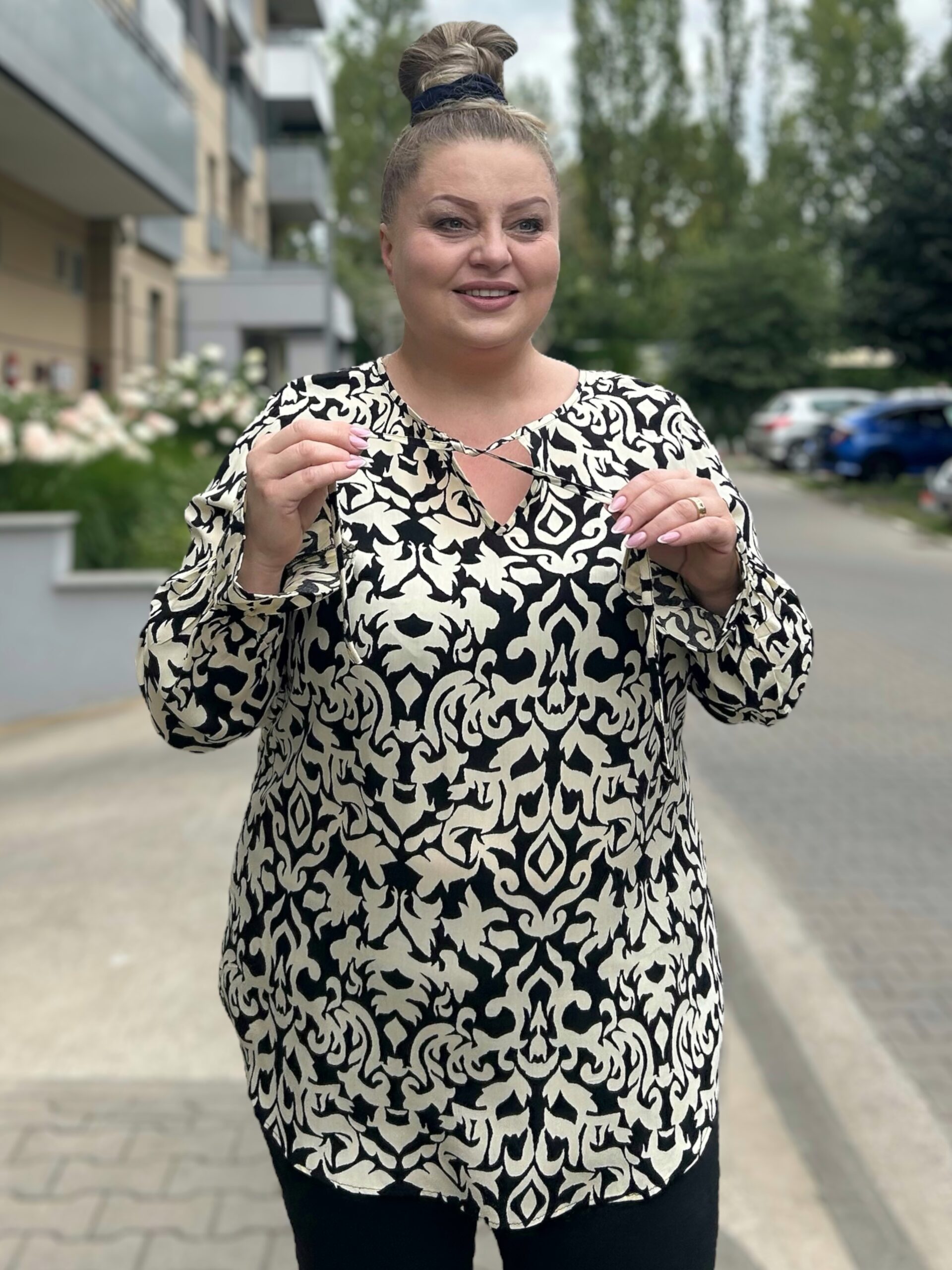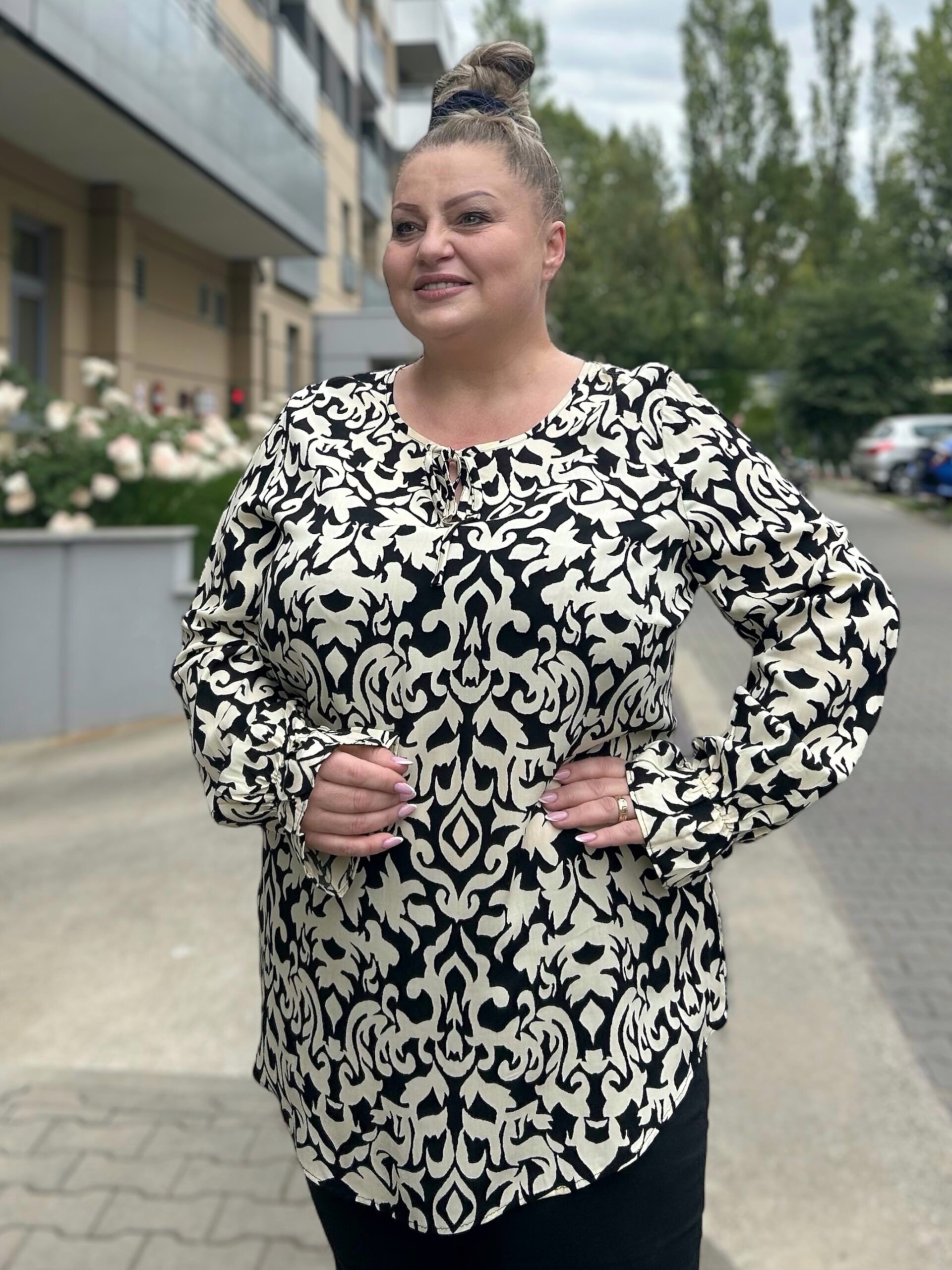 Modelka ma na sobie rozmiar 50.